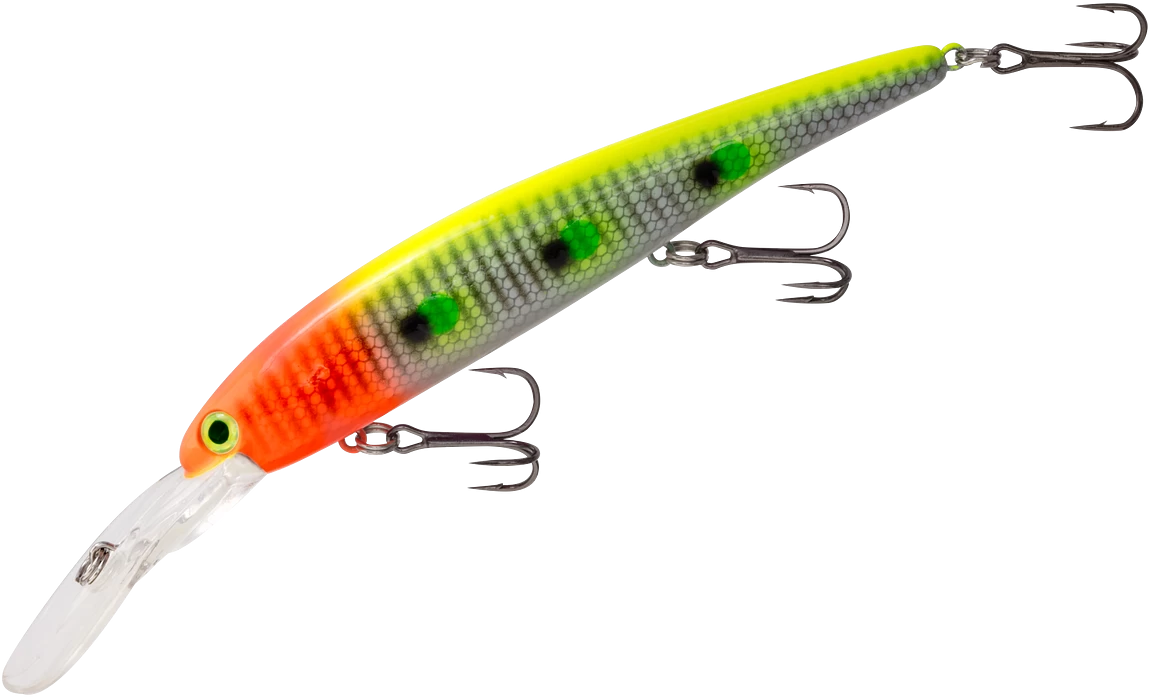 The Bandit Walleye Deep Trolling Plug is a 4 3/4 inch walleye hard minnow trolling lure. It will troll down to 27 feet and is a great lure for exploring deeper water. Walleye, zander, and other predator fish love this slender minnow jerkbait. The round lip makes it dive quick and true every time. Measuring 4-3/4-inches and weighing 5/8-ounce, the Deep Walleye Bandit is a go-to fishing lure for walleye anglers all over North America.