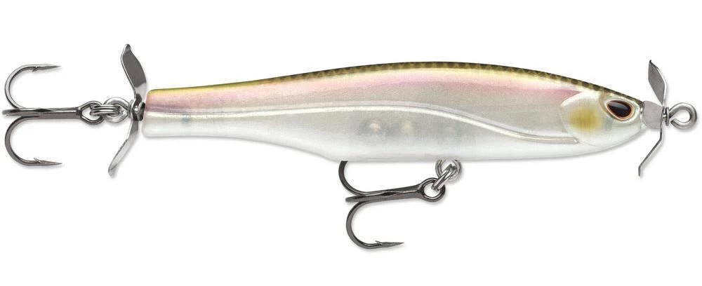 The Arashi Spinbait attracts wary suspended fish on the fall and during the retrieve with its delicate rolling action and revolving blades. Slow sinking – head down with a slight body shimmy and moving propellers as you count it down to depth. Counter Rotating Propellers- add subtle flash and vibration while insuring the bait moves in a straight path. 3-2 Prop Design creates vibration pattern the angler can feel ensuring the optimal slow retrieve speed to maximize the lures’ action and to maintain depth.