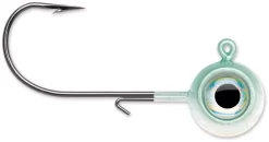 - The VMC Neon Moon Eye Jig is a lead jighead featuring a large holographic fish eye.