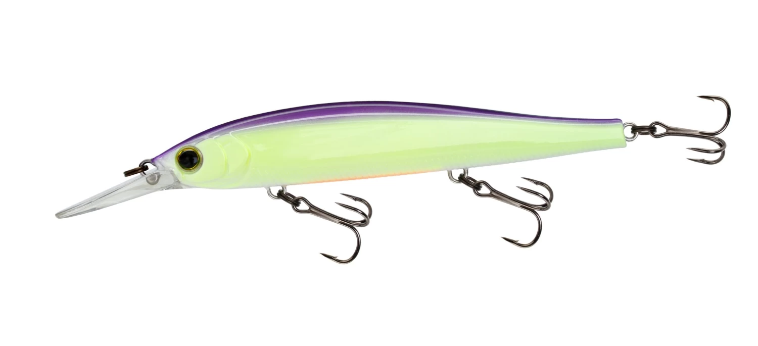 The Yo-Zuri 3DB Jerkbait Deep 110 is a 4 3/8 inch, 1/2 ounce deep-diving jerkbait that, along with the 3DB Jerkbait 110, is one of the newest members of Yo-Zuri’s 3DB Series of hard baits. Featuring a classic minnow profile and a flat-sided body design, the 3DB Jerkbait Deep 110 dives between 8 and 12 feet and excels at both stop-and-go and pause/jerk/pause retrieve cadences. The lure is also specially designed to achieve a head-down posture on the pause that induces strikes from gamefish stalking the lure.