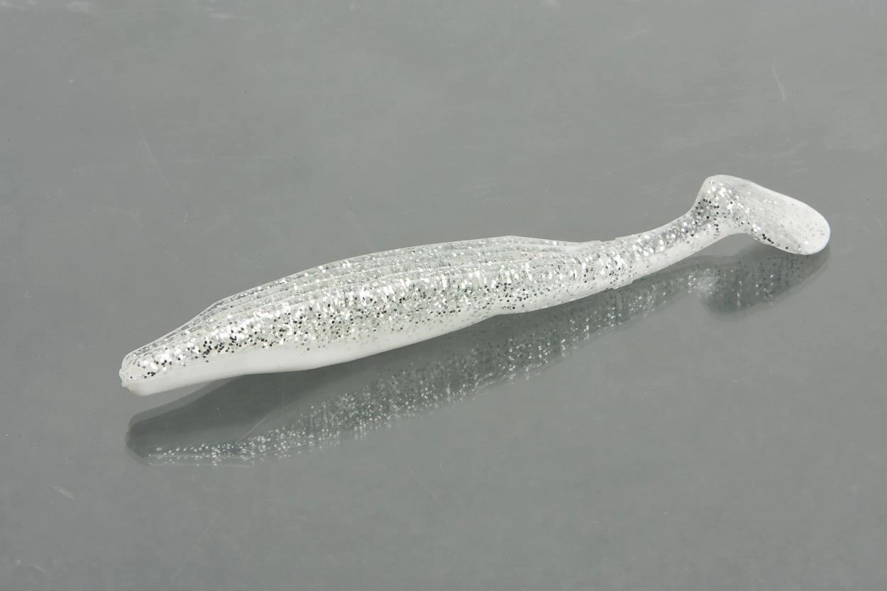All of the great characteristics of the original Super Fluke, now with a hard-pounding paddle tail. You can fish it like its predecessor, with a swoop and glide motion, or wind it steadily and feel it pulse like a spinnerbait. It’s great by itself or on the back of a swim jig or vibrating jig, where it calls fish from a distance with its sizeable acoustic footprint.